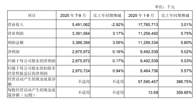 截至2025年9月末,该行总资产达1.39万亿元,较上年末增幅10.81%;存款总额9864.32亿元,较上年末增幅11.35%;贷款总额8474.81亿元,较上年末增幅14.13%。截至2025年9月末,不良贷款率为0.68%,拨备覆盖率为433.08%。