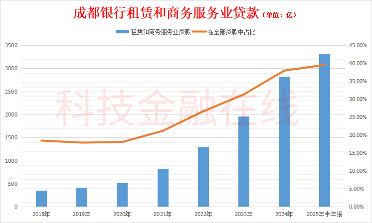 2025年半年报显示,租赁和商务服务业贷款余额3302.67亿,占全部贷款的39.57%,占对公贷款的50.37%。