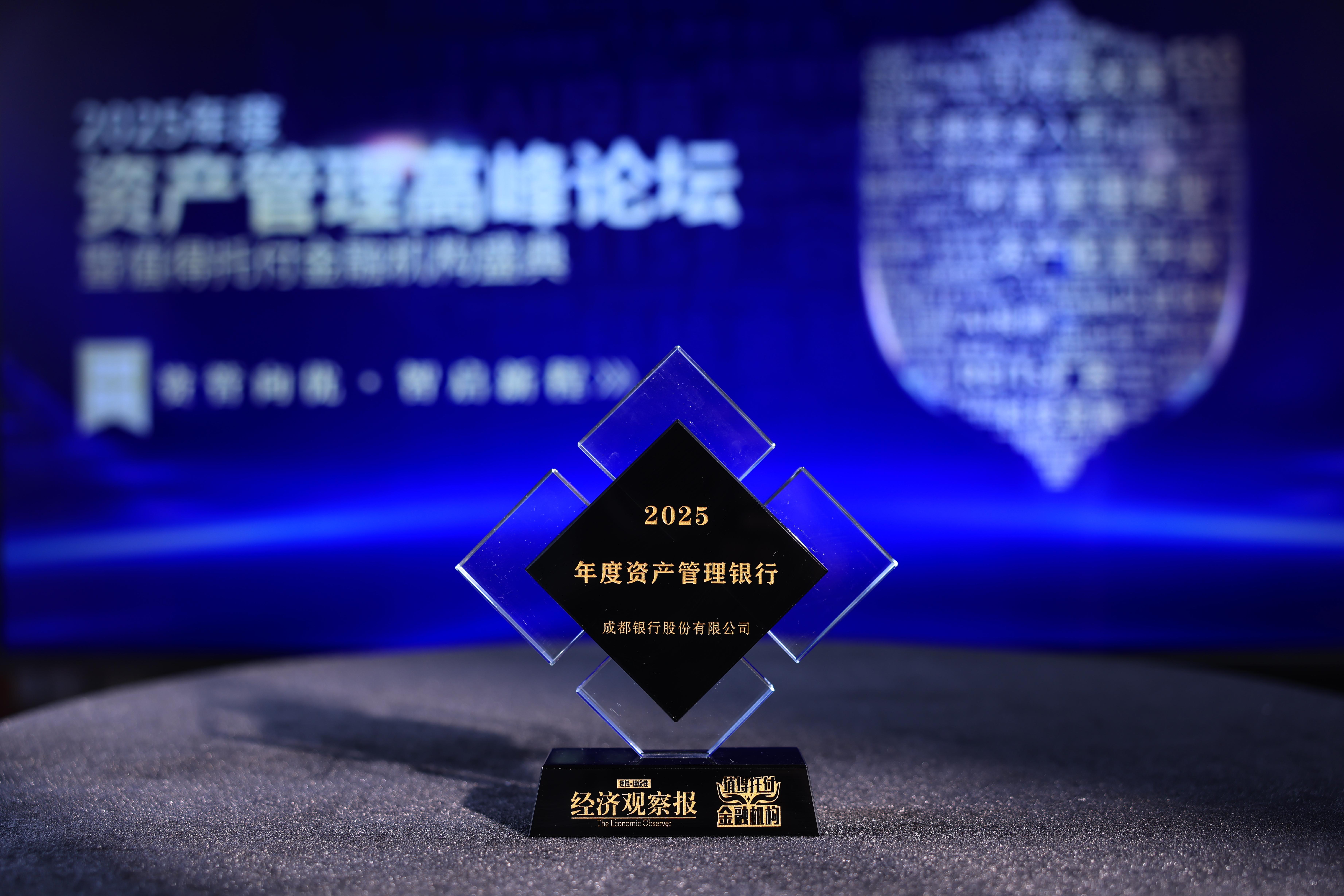 11月26日,由《经济观察报》主办的2025资产管理高峰论坛在北京举行,本届论坛以“资管向优·智启新程”为主题,汇聚行业领军人物、权威专家学者及相关政府部门代表,围绕资产管理的高质量转型路径、绿色金融发展趋势等核心议题展开深度交流。高峰论坛期间, 成都银行 股份有限公司(以下简称“ 成都银行 ”)凭借“芙蓉锦程”这一领先的区域理财品牌,荣获2025年度资产管理银行。