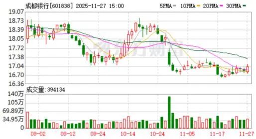 成都银行 成立于1996年12月,2018年1月31日在上交所主板上市,成为四川省首家上市银行、国内第8家A股上市城商行。截至2025年11月27日收盘,该行总市值721亿元,在A股42家上市银行中排名第24,但在17家城商行中排名相对靠前。
