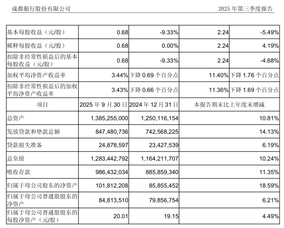 (图源:成都银行2025第三季度报告)