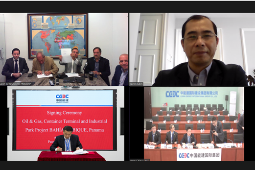 4月22日上午,中国能建国际集团与巴拿马JR AVALUOS公司和INVERSIONESONEROM公司通过视频连线,签署了巴拿马巴伊亚-皮克油气集装箱码头和工业园区建设项目合同协议。公司党委副书记、总经理乔旭斌参加本次签约仪式。