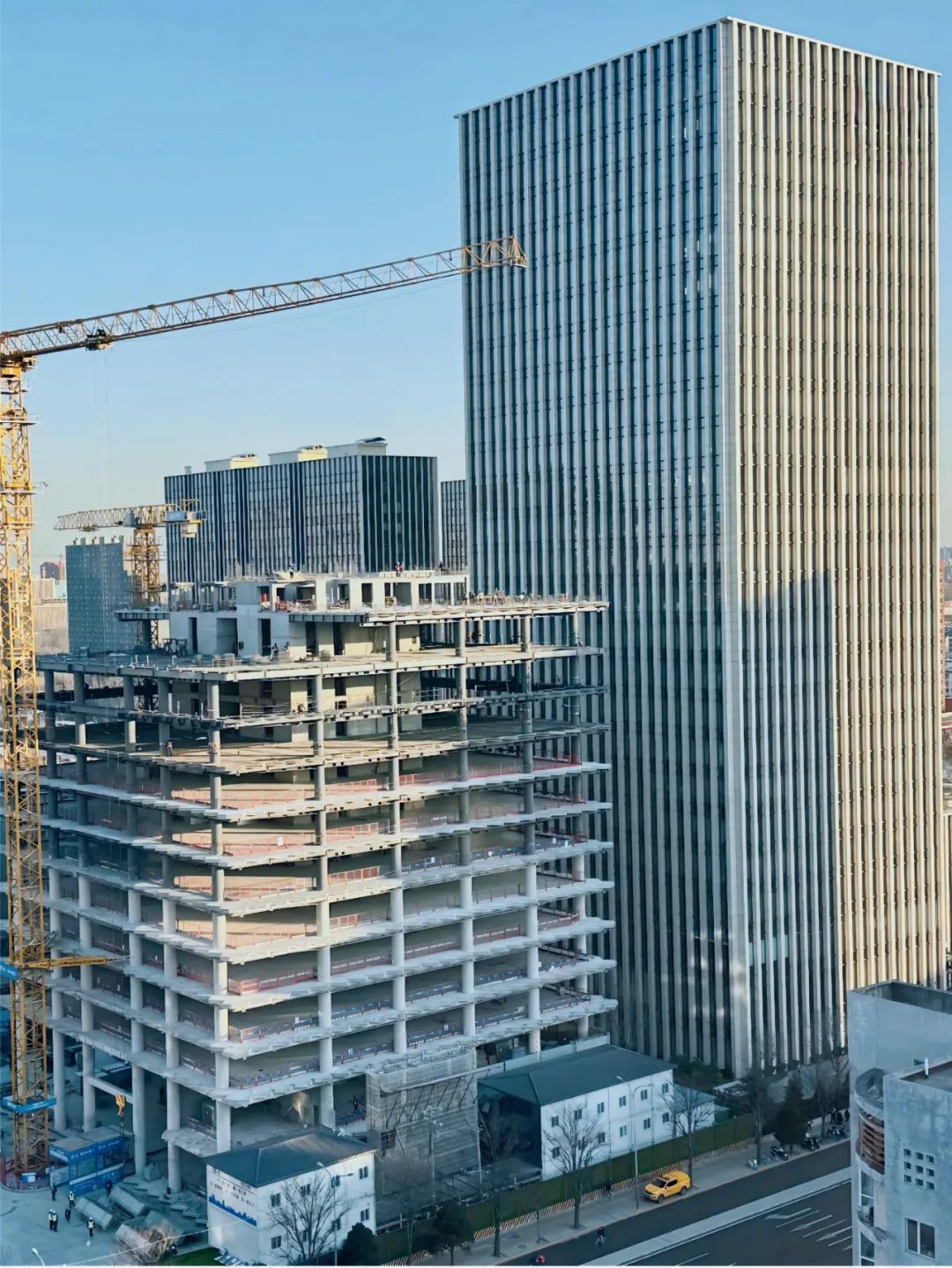 中国能建大厦二期项目位于北京市朝阳区东四环内,总建筑面积6.52万平方米。项目被评为“十四五”国家重点研发计划项目科技示范工程,成为国内首批近零碳建筑示范项目,先后获评北京市建设工程智慧工地技术应用AAA级评价和北京市绿色安全文明工地,树立了北京市大型近零碳办公建筑的标杆。