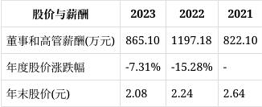 中国能建公司股价从2021年末的2.64元,到2023年末的2.08元,跌幅21.47%。可以看出,在公司股价下跌的情况下,董事和高管的薪酬仍然增长。