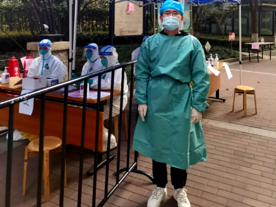 外运集运上海地区员工施亮第一时间加入志愿者队伍,共组织750户、1700多名居民有序参与核酸检测。施亮时刻提醒自己要毫不松懈,把控好社区防线、落实好防疫政策,做好社区防疫的守护者。