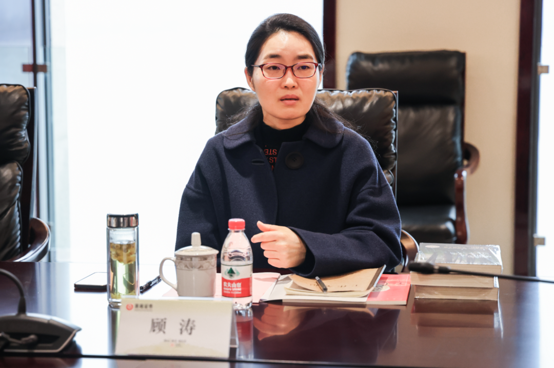 吴承根对顾涛一行的到来表示热烈欢迎,并简要介绍了浙商证券历史沿革、近年来经营发展情况和服务实体经济情况及今年重点工作思路。他表示,作为浙江省首家本土上市券商,浙商证券积极发挥本土券商主力军作用,主动贯彻落实省委省政府重大战略部署,支持山区26县跨越式发展,助力浙江经济结构转型和共同富裕示范区建设,为地方经济转型、区域资本市场建设和实体经济发展贡献了“国字号”力量。