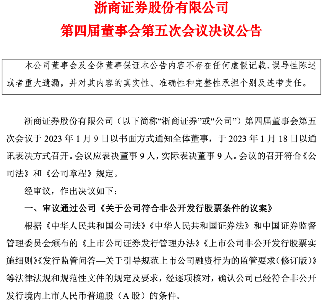 1月18日,浙商证券公告称,其计划通过定增方式向包括控股股东在内的不超过35名(含35名)特定投资者,募资不超过80亿元。目前该定增预案已通过浙商证券董事会审核,这也是上市券商在2023年推出的首个再融资方案。