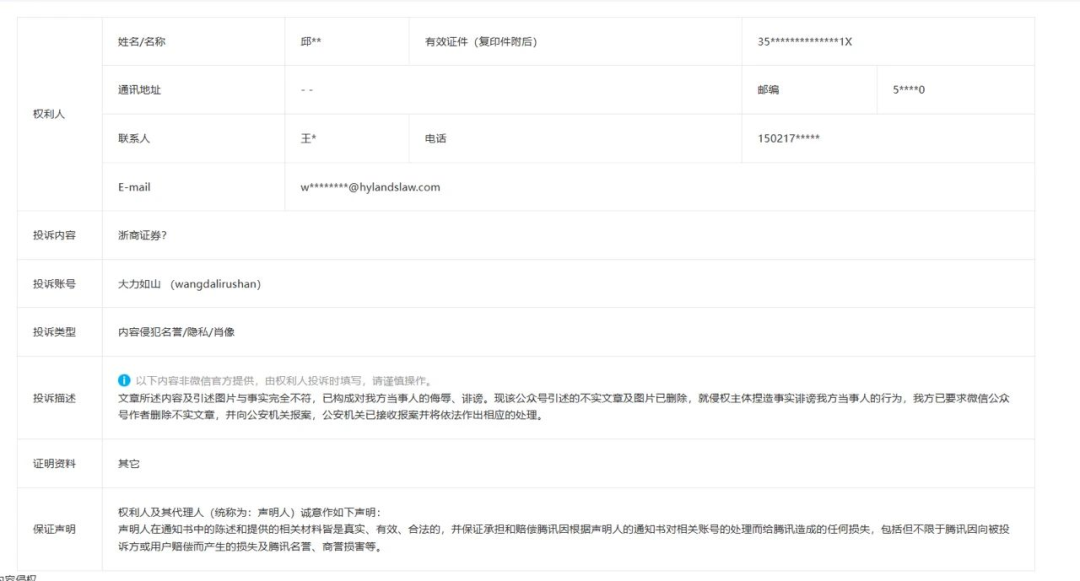 这不,大力如山连续发文,放出了由邱**授权,署名王*并以“hylandslaw”为邮箱后缀的投诉函。