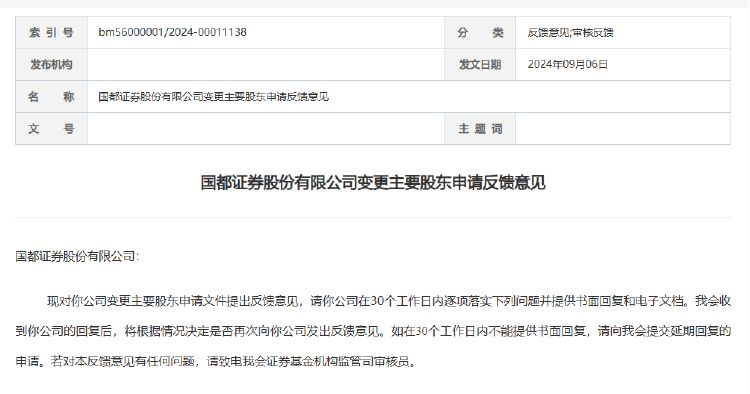此外,今年9月,浙商证券“入主”国都证券再迎新进展。证监会发布了对国都证券变更主要股东申请反馈意见,主要包括七项内容,并要求国都证券在30个工作日内逐项落实下列问题并提供书面回复和电子文档。其中,多个反馈意见都涉及国都证券、浙商证券双方。此外,证监会还要求浙商证券就未来两家证券公司的私募子公司整合计划的合规性进行论证。