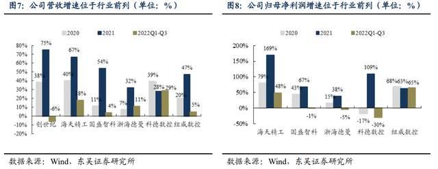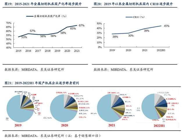 ①行业集中度提升:根据 MIR 睿工业的数据,2019 年排名 TOP10 数控机床厂商整体市场销售额占比为 28%,2022H1 TOP10 的数控机床厂商,整体销售额占比达 45%,市场集中度大幅提升;