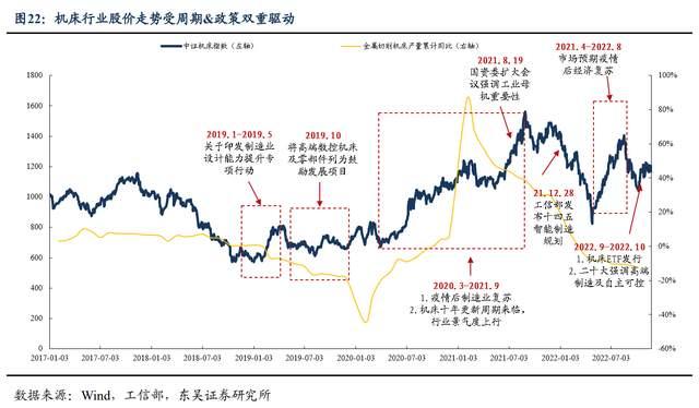 例如 2021年 8月,国资委党委扩大会议指出要重点扶持工业母机行业;2022 年 10 月二十大再次提出要实现制造强国,并提升关键领域自主可控能力。
