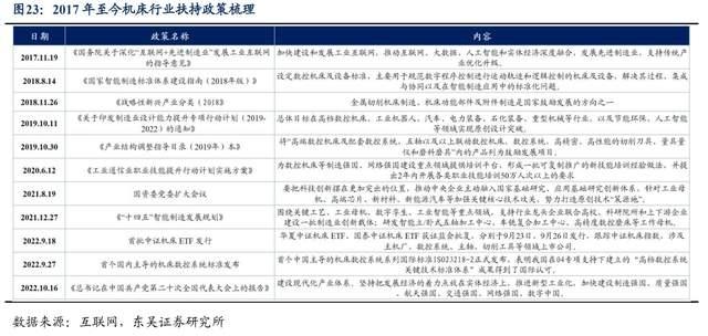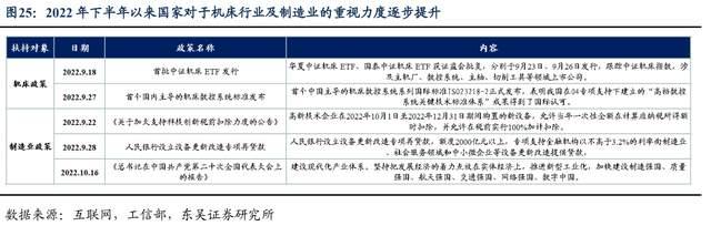 2022 年下半年以来,国家对于机床行业及制造业的重视力度逐步提升,并出台一系列政策进行扶持。