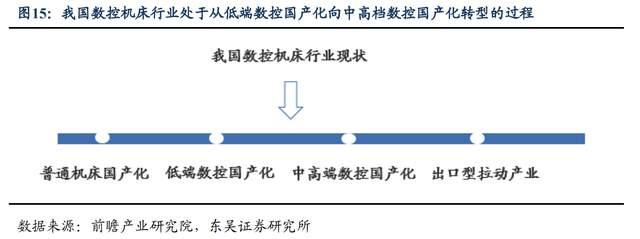 1)从发展阶段来看,我国机床行业基本完成普通机床向低端数控机床国产化的转变,正处于由低端数控机床国产化向高档数控机床国产化的转型阶段,高档机床仍存在大量进口需求。