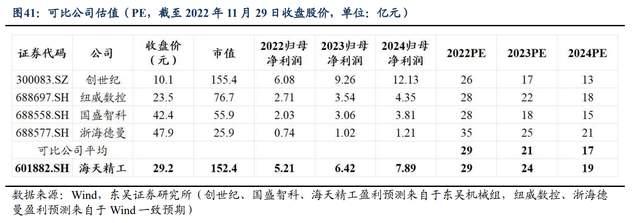 可比公司方面,公司主营业务为中高端数控机床,产品涵盖数控龙门加工中心、数控立式加工中心、数控卧式加工中心等多种机型,产品结构较为稳定,故我们选取纽威数控、国盛智科、创世纪、浙海德曼作为可比公司。