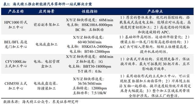 海天精工面对新能源大趋势,迅速实现转型,对公司现有的多种通用机型进行再研发,推出适用于新能源汽车市场的一站式零部件解决方案,目前已获得市场良好反馈。