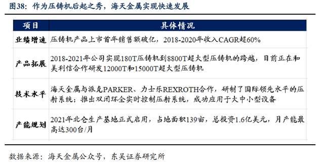 未来随着新能源车和一体化压铸工艺渗透率不断提升,海天金属超大型压铸机大有可为。
