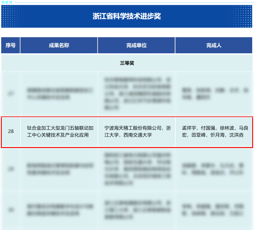 2月9日,全省建设一流创新生态打造最具竞争力营商环境大会在杭州举行。大会表彰了2024年度浙江省科学技术奖305项。其中,由海天精工牵头的《钛合金加工大型龙门五轴联动加工中心关键技术及产业化应用》项目荣获浙江省科学技术进步奖三等奖。