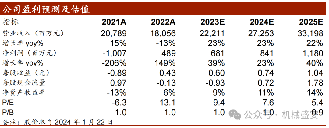 维持“买入”评级。公司在手订单充沛,且积极布局BIPV幕墙新赛道,基于此我们看好公司成长性。考虑到订单转换周期等因素,我们调整盈利预测:预计公司2023~2025年归母净利润分别为6.81、8.41、11.80亿元(前值2023~2025年分别为7.00、9.16、11.91亿元),按照2024年1月22日股价对应PE分别为9.4、7.6、5.4倍,维持“买入”评级。