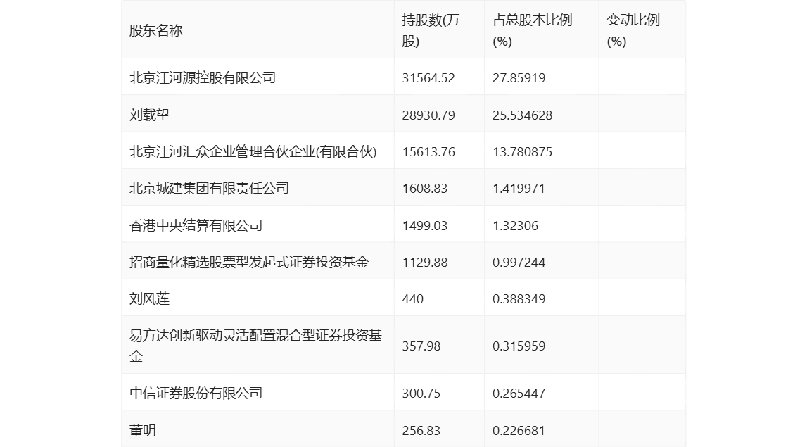值得注意的是,根据半年报数据,江河集团34.82%股份处于质押状态。其中,第一大股东北京江河源控股有限公司质押1.49亿股公司股份,占其全部持股的47.18%。