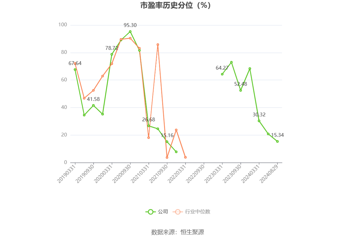 市盈率为负时,不显示当期分位数,会导致折线图中断。