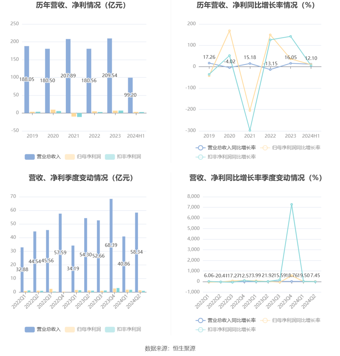 根据半年报,公司第二季度实现营业总收入58.34亿元,同比增长7.45%,环比增长42.79%;归母净利润1.41亿元,同比增长9.12%,环比下降22.54%;扣非净利润9885.02万元,同比下降14.13%,环比下降44.02%。