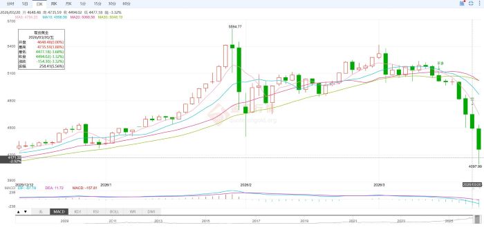 近4个交易日,现货黄金XAU已从5005美元/盎司降至4097美元/盎司的低位,累计跌幅达908美元,短期回调力度显著超出市场预期。