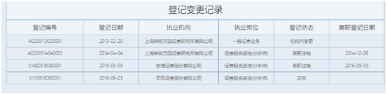 据证券业协会披露的刘章明相关执业信息来看,从2013年到现在的近10年间,刘章明一共在申万宏源、安信证券、天风证券三家券商任职。“卖方黄埔军校”申万研究所是其分析师职业生涯的起点,而天风证券则是其目前为止任职时间最长的券商。