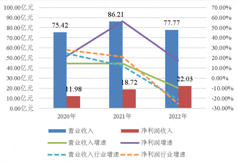 2022年,方正证券营业收入为77.77亿元,同比下降7.79%;归母净利润为21.48亿元,同比增长17.88%,创六年新高。