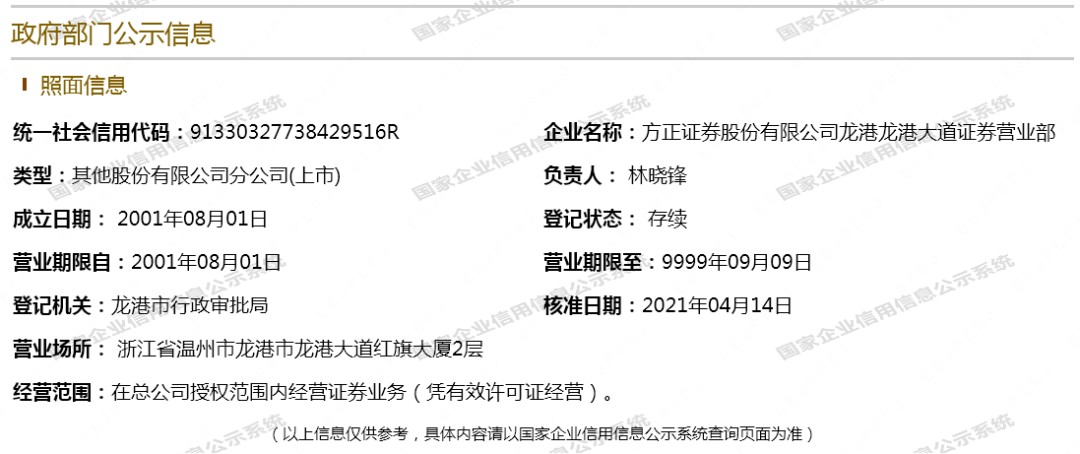 营业部负责人林晓锋因负有直接责任,处罚最重:被采取责令改正的监管措施,并记入诚信档案。伟海精英数据显示,他早年任职于国信证券和申万宏源证券。2015年加入方正证券,曾任瑞安罗阳大道营业部总经理;2019年11月调任龙港大道营业部总经理至今。