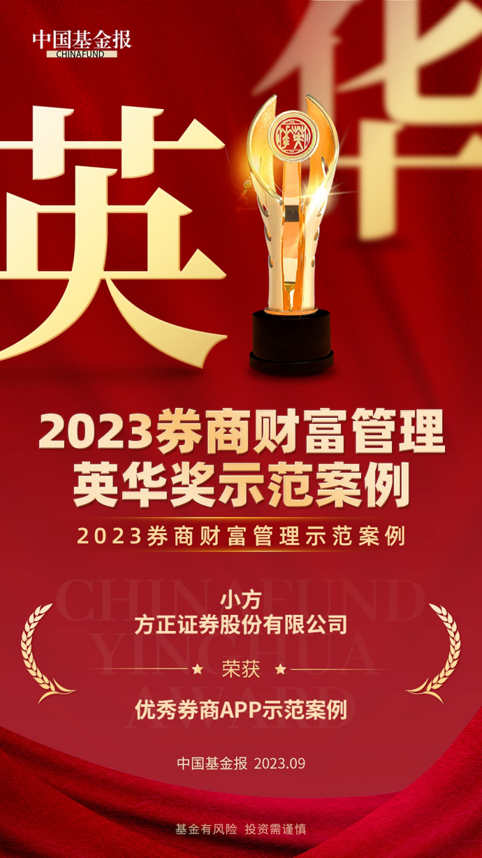 今天,由《中国基金报》主办的“英华奖”系列评选结果正式揭晓,方正证券荣获三个奖项: