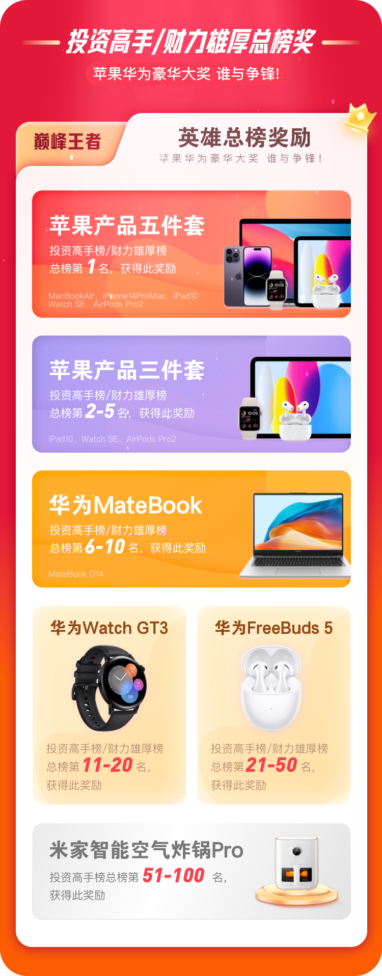 大赛期间,共有95,474名用户报名参赛,550名用户获得了实物奖励,11573名用户获得了卡券奖励,同时,大赛期间共有134只重点合作ETF被客户加入了自选池。