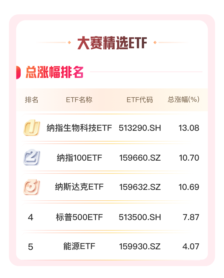 本届大赛收益率表现最佳的大赛精选ETF也已出炉,有没有你的选择呢?