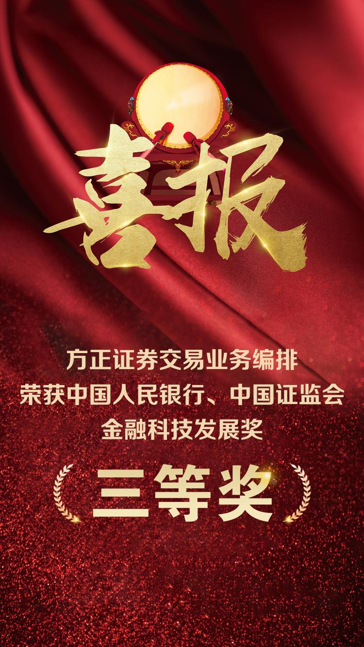 “金融科技发展奖”是国内金融科技领域的部级奖励,由中国人民银行于1992年设立,人民银行联合证监会共同举办,集中评选国内金融领域优秀科技创新成果,参与范围涵盖银行、证券、保险、支付等领域的头部机构。本次获奖充分肯定了方正证券在金融科技创新方面的工作成果。