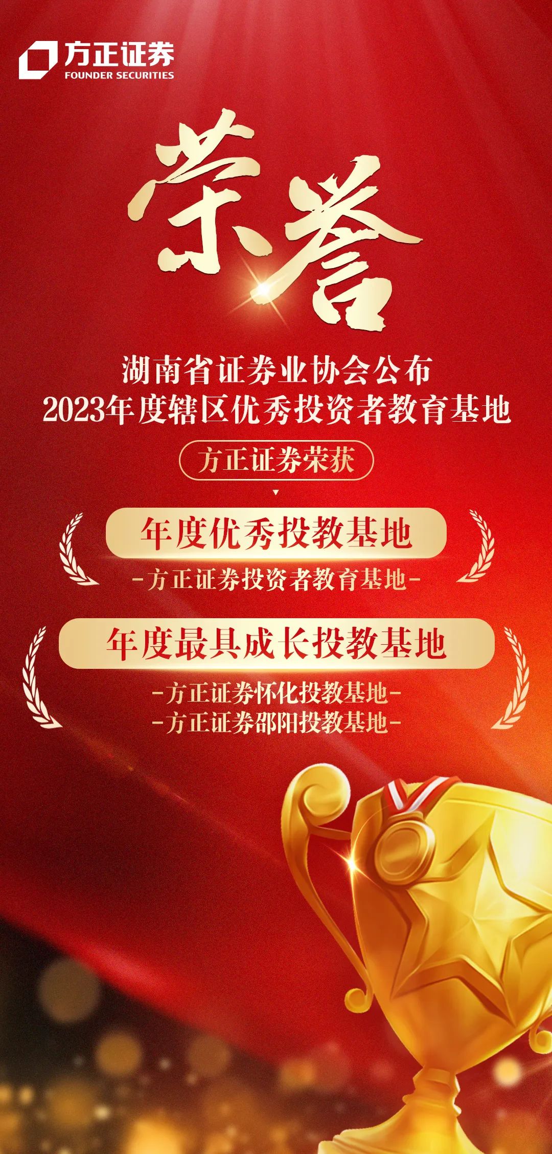 近日,湖南省证券业协会公布2023年度辖区优秀投资者教育基地,方正证券投资者教育基地获评年度优秀投教基地,方正证券怀化投教基地和方正证券邵阳投教基地获评年度最具成长投教基地。