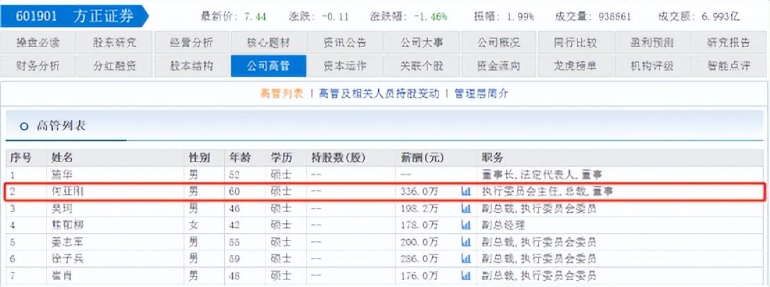 另外公开资料显示,何亚刚在方正证券年薪为336万元,并不算低。
