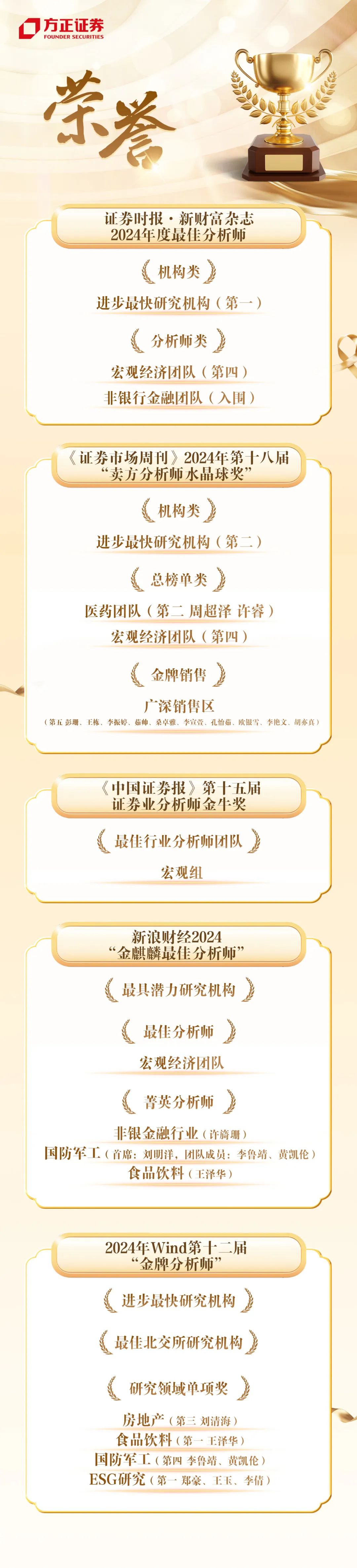 12月24日,“证券时报·新财富杂志2024年度最佳分析师”结果揭晓,方正证券获评“进步最快研究机构(第一)”,同时宏观经济团队、非银行金融团队成功入围。