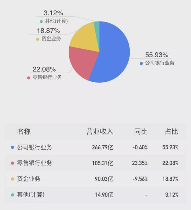 2020年,浙商银行公司银行业务收入266.79亿元,对营收的贡献为55.93%;零售银行业务收入为105.31亿元,占比22.08%。在2019年,该行零售银行业务的营收占比不足20%,仅18.41%。