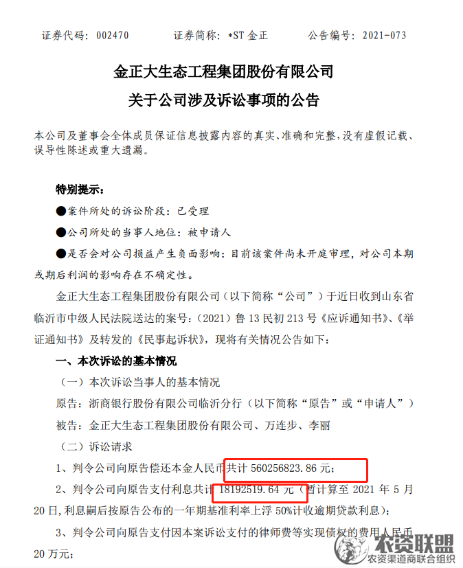 大致的意思就是浙商银行为金正大垫付了承兑汇票款项,然后这些款项成了金正大在浙商银行的逾期贷款,浙商银行按基准利率上浮 50%计收逾期贷款利息。因为现在金正大违约了,目前只能走诉讼途径来解决这个事情。