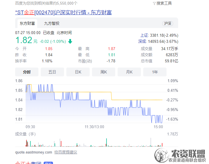 我们农资行业的化肥龙头企业金正大,自从2019年4月30日年报公布支付给诺贝丰37亿人民币,但是没收到货,被合作的会计事务所出具“保留意见”之后,股价由前年7.5元左右/股,跌到了今天(2021年7月27日)收盘价的1.82元/股,而且金正大股票的前面加了一个ST标志,变成了ST金正大,经常炒股的人都知道,被标ST意味着什么。