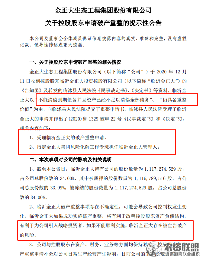 在2020年12月份的时候,金正大生态工程集团股份有限公司(以下统称金正大)发了一份破产重整的公告,据股吧传言有国资进场,对金正大进行整合,目前来说还没有什么消息。