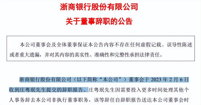 就在沈仁康被查通报发布当日,浙商银行董事庄粤珉“因需要投入更多时间处理其他个人事务”辞去该行非执行董事职务。值得一提的是,庄粤珉于2021年7月被选举为非执行董事,截至辞职日期,其董事任职资格尚未取得监管部门核准。