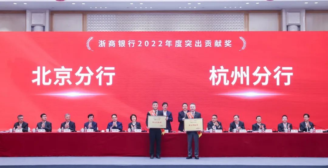 北京分行、杭州分行勇于开拓、敢于突破,综合绩效评价名列前茅,各大业务条线排名领先全行,业务规模和经营效益贡献突出,党建与队伍建设发挥示范引领效应,荣获2022年度“突出贡献奖”。