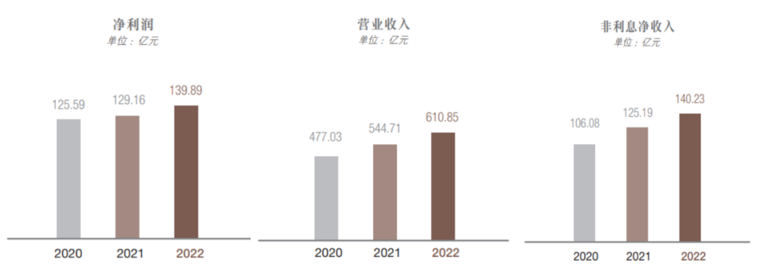2022年年报显示,浙商银行营业收入610.85亿元,同比增长12.14%,净利润为139.89亿元。