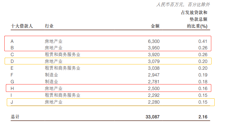 而在浙商银行的“前十大贷款客户”列表中,房地产占了五席之多,总贷款数达到181.09亿元,比2021年112.38亿元多出68.71亿元。