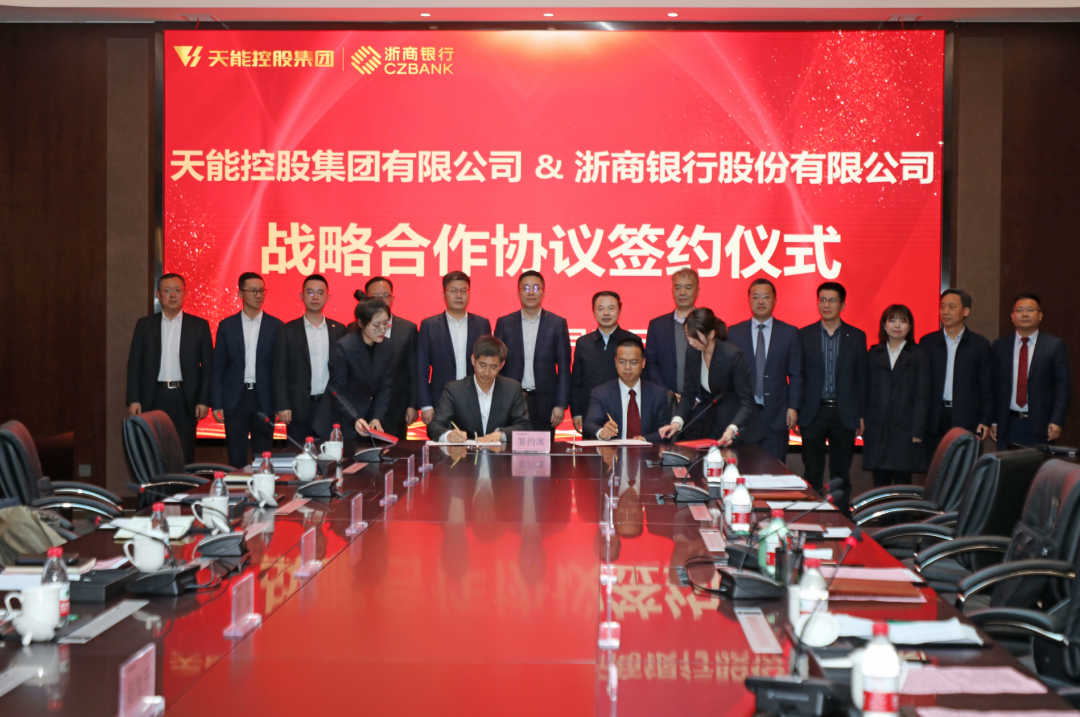 近日,天能控股集团与浙商银行股份有限公司签订战略合作协议。天能控股集团党委书记、董事长张天任,浙商银行党委委员、副行长景峰及双方领导共同见证签约,天能财务总经理王志军与浙商银行公司银行部总经理郭斌代表双方签署协议。