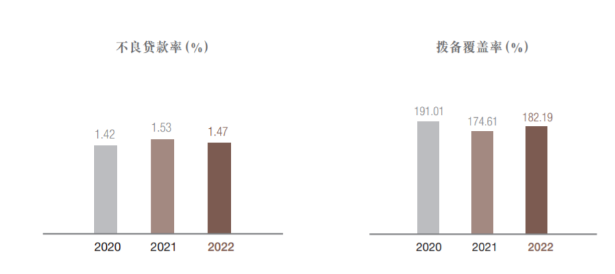 财报显示,截至2022年末,浙商银行不良贷款率降至1.47%,比上年末下降0.06个百分点,新增业务不良率生成率持续下降,拨备覆盖率升至182.19%,较上年末上升7.58个百分点。