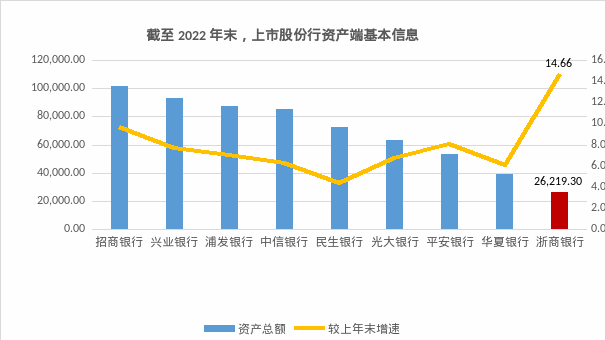 在九家上市股份行中,由于上市时间较短、资本市场认知较少,浙商银行的资产规模及发放贷款规模靠后,但规模增速均处于领先地位,资产规模增幅主要依靠信贷的大幅增长来拉动,这意味着浙商银行聚焦信贷主业、回归本源的初衷。