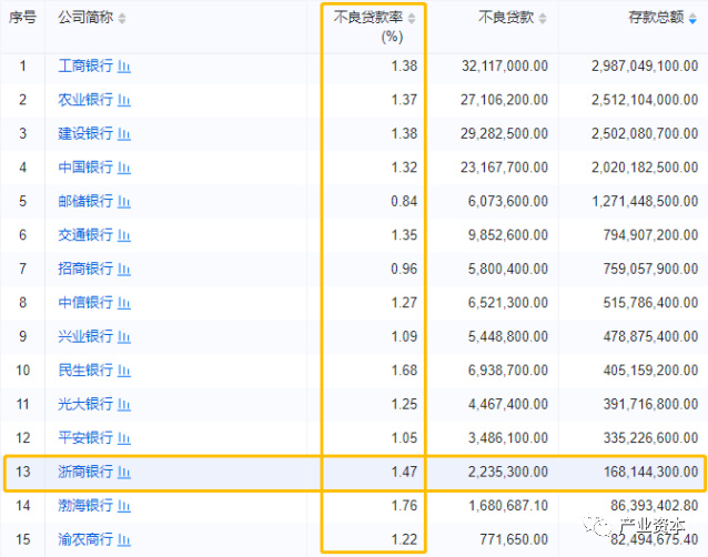 Wind数据显示,截至3月31日,在存款总额规模前十五的银行中,浙商银行的不良贷款率名列第三。