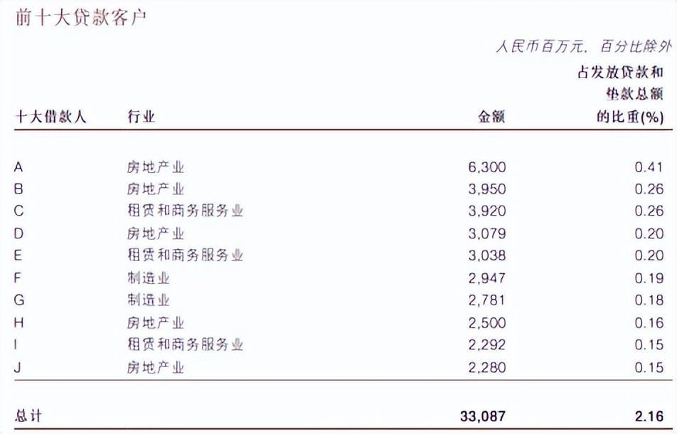 2022年,浙商银行前十大贷款客户主要以房地产业客户为主。同期,房地产贷款金额为1668.27亿元,占全行贷款比为10.94%,该比重明显高于招商银行的6.21%、兴业银行的7.14%,以及浦发银行的6.57%等。