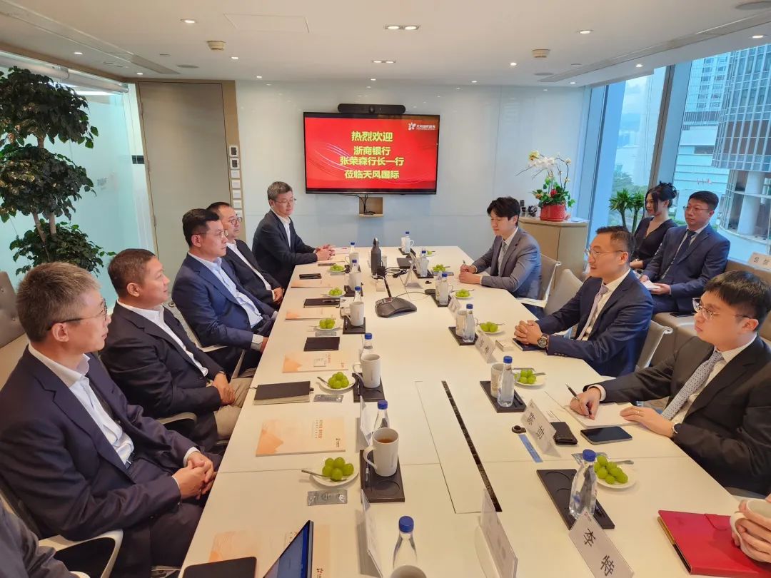 邹传行政总裁对张荣森行长一行来访表示热烈欢迎,并介绍了天风国际在债券发行、投资银行、资产管理等领域的发展成果和业务特点。他表示,天风国际是天风证券股份有限公司(以下简称“天风证券”)的全资香港子公司,也是湖北省属唯一境外金融平台。天风国际背靠湖北,立足香港,布局全球,旨在以全面、多元的专业服务,成为连接海内外资本市场的桥梁纽带,积极助力优质企业“走出去”和“引进来”。他强调,近年来两地金融行业发展迅速,中资企业在香港金融市场的发展空间亦愈发广阔。希望未来能与浙商银行携手,在跨境融资、债券投资等领域深入合作,进一步提升双方在各自领域的核心竞争力。